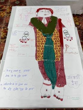 This participatory workshop, held in Hapur College in February 2025 brings together women from rural and working-class backgrounds to co-create powerful visual and narrative expressions of their experiences of menopause. Using body mapping storytelling, participants drew on their embodied knowledge to map the emotional, social, and physical dimensions of menopausal life. The body maps act as starting points for storytelling, allowing women to reflect on their health, labour, and lived realities within the layered contexts of caste, class, gender, and rural precarity. Alongside this process, participants generated artivist materials—body maps that included slogans—that speak to their unique challenges and solidarities, amplifying voices too often left out of mainstream health and feminist narratives. This workshop foregrounds creative storytelling as a method of resistance and recognition, centring the everyday wisdom and collective knowledge of women whose experiences with menopause have been historically neglected or silenced.